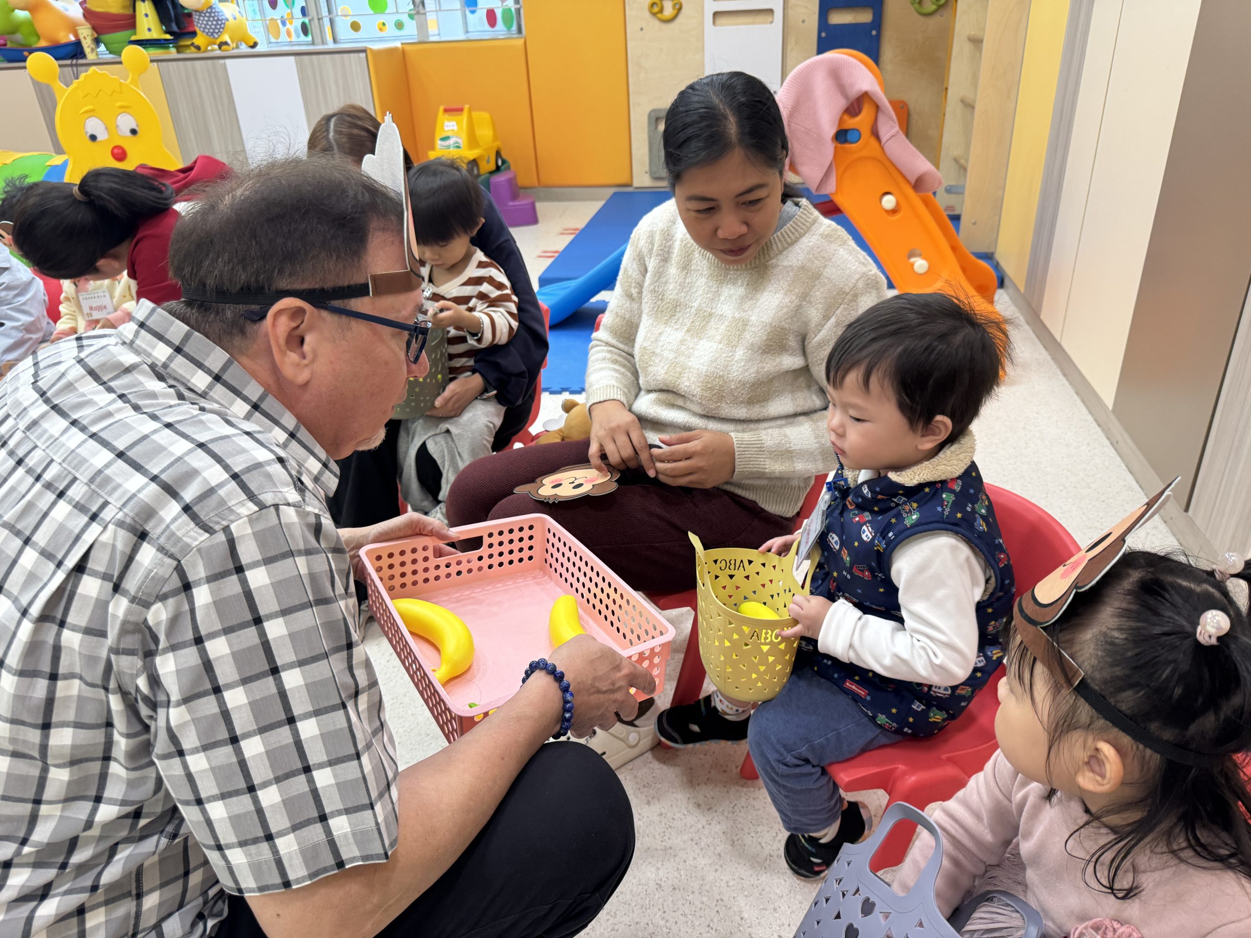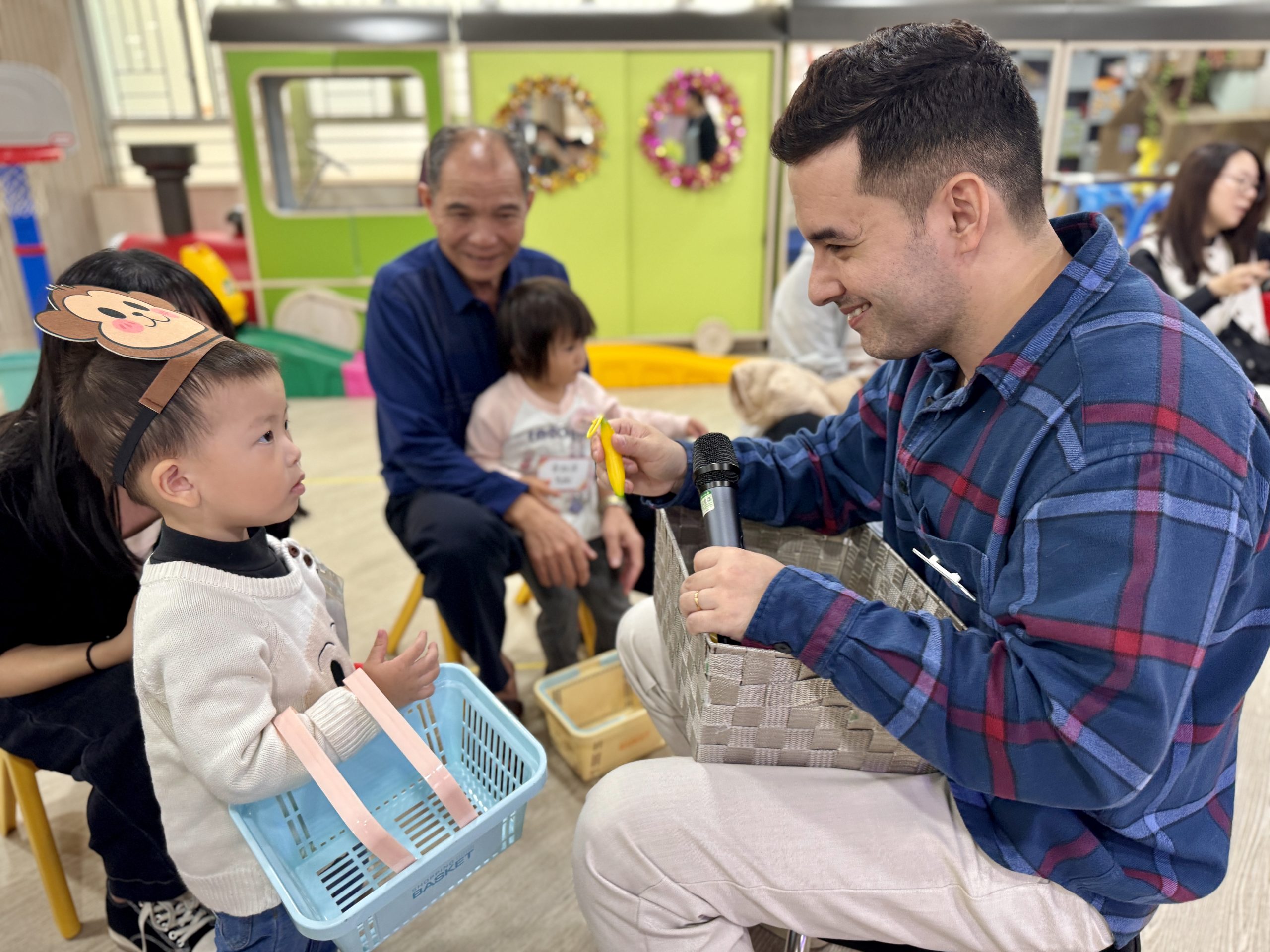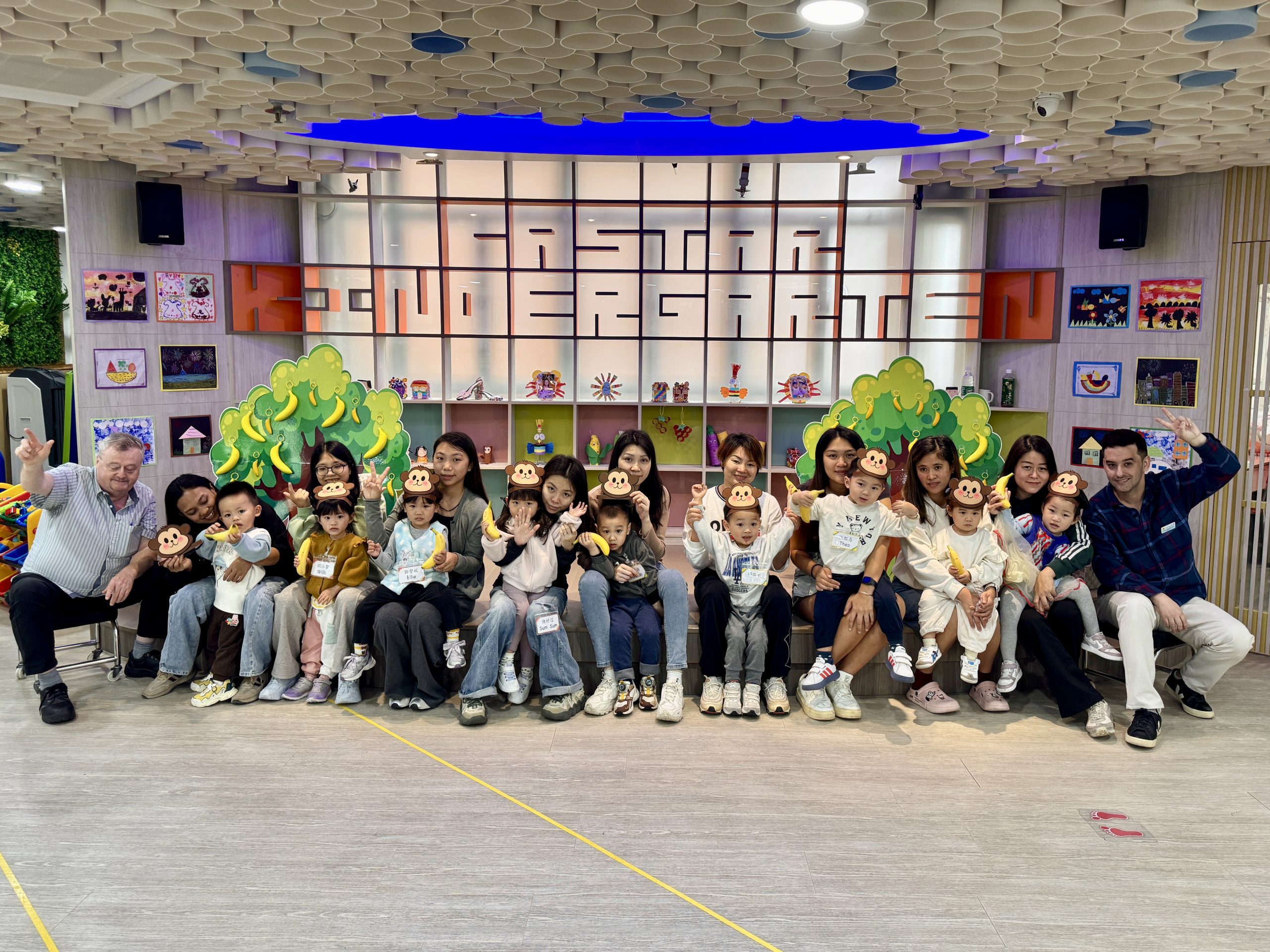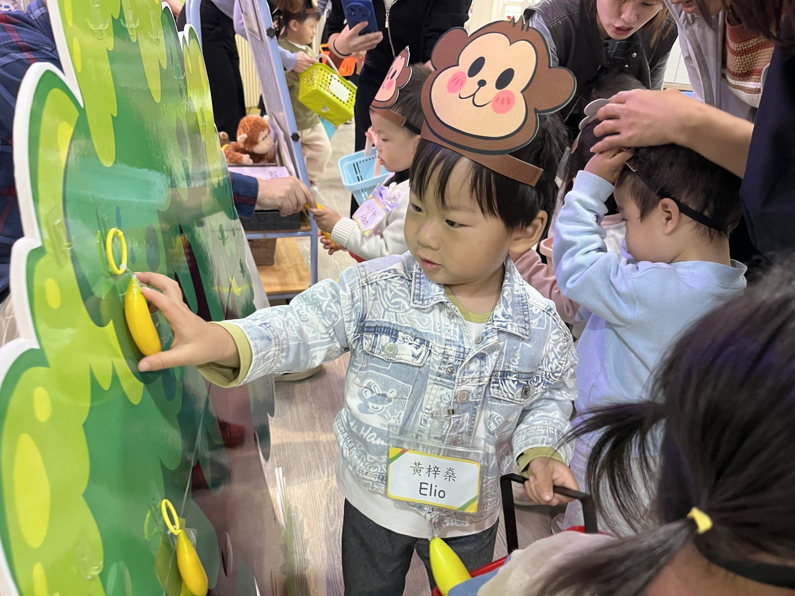 21 12 月, 2025 新生英文遊戲班(2) (new) 活動回顧﹕親子英文遊戲班(2) 「Little Monkey , Little Monkey ….」是次「新生英文遊戲班(2)」,一眾小朋友戴上猴子頭飾,變身成為可愛的小猴子,與外籍老師一同唱唱跳跳,邊玩邊學,非常開心! 樹上又大又小的香蕉,那一隻合適?聽著外藉老師的說話就成功做到了,還會說「Banana!」呢!看著小朋友們開心雀躍的樣子,可愛極了!