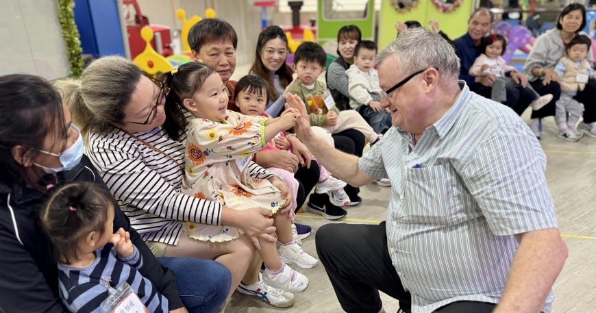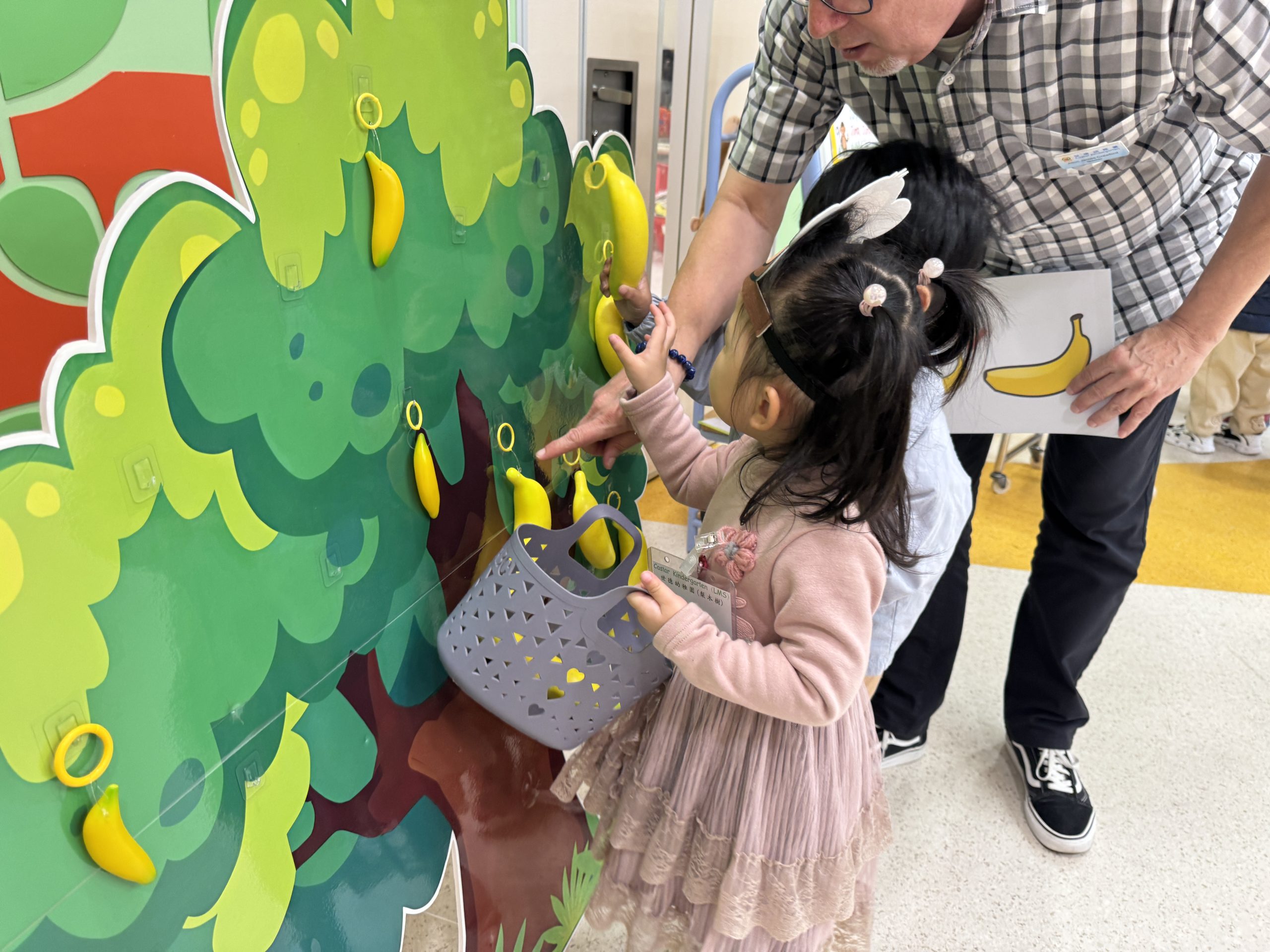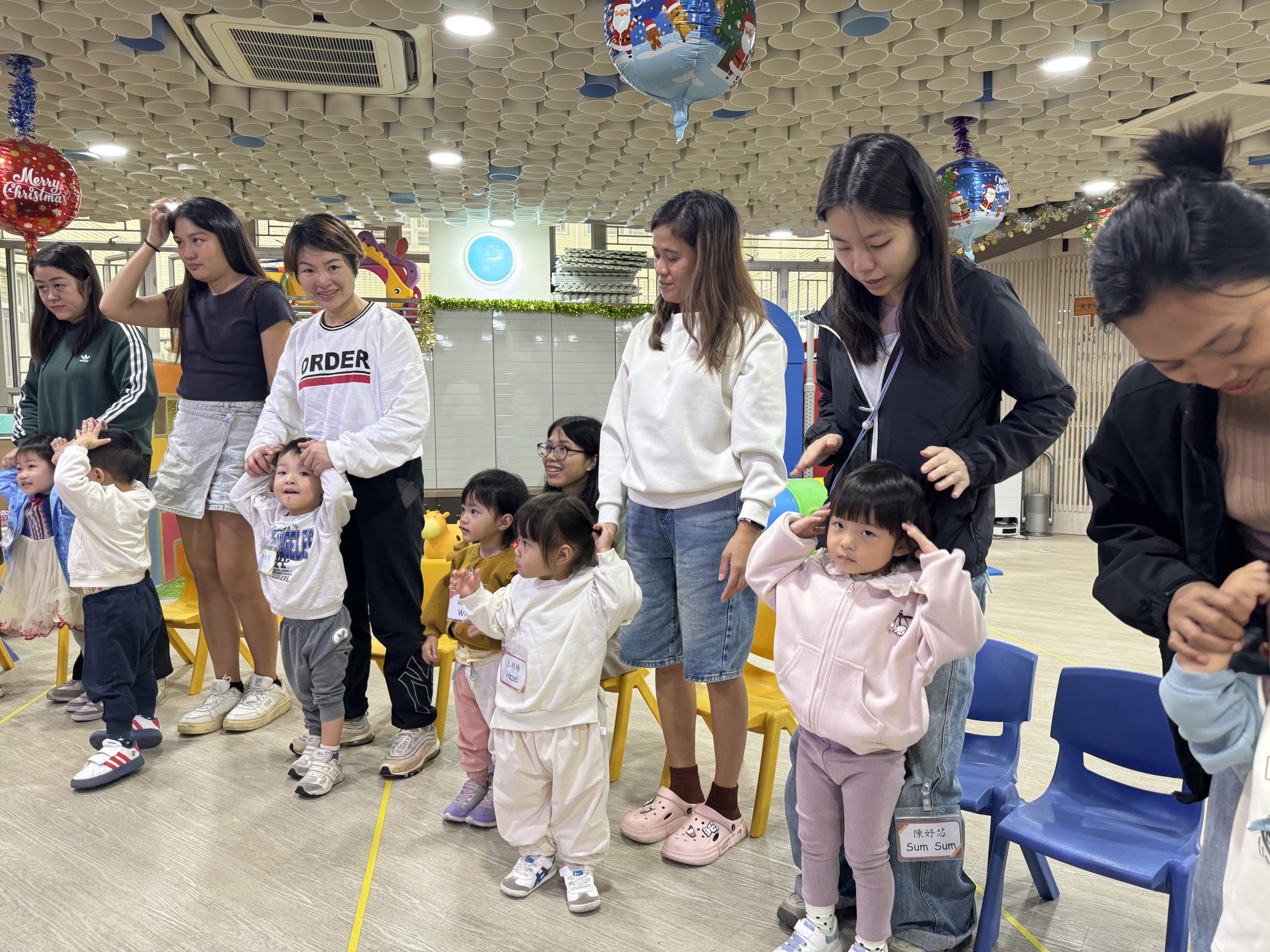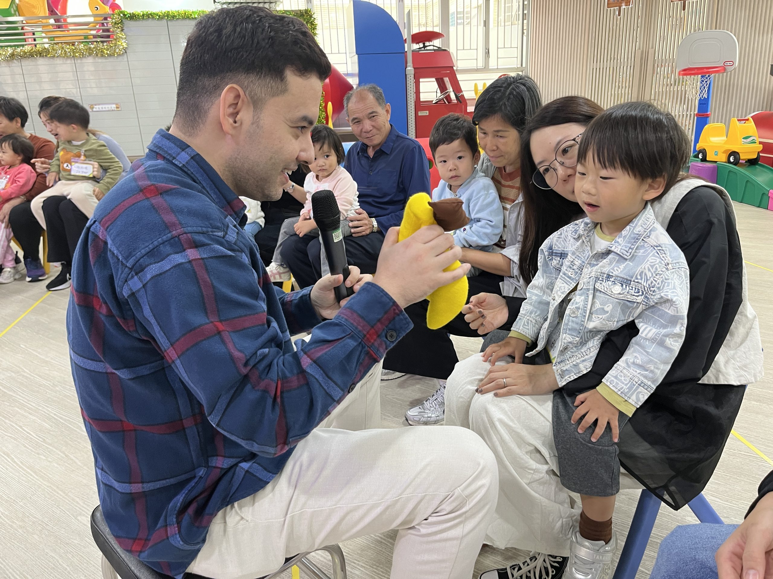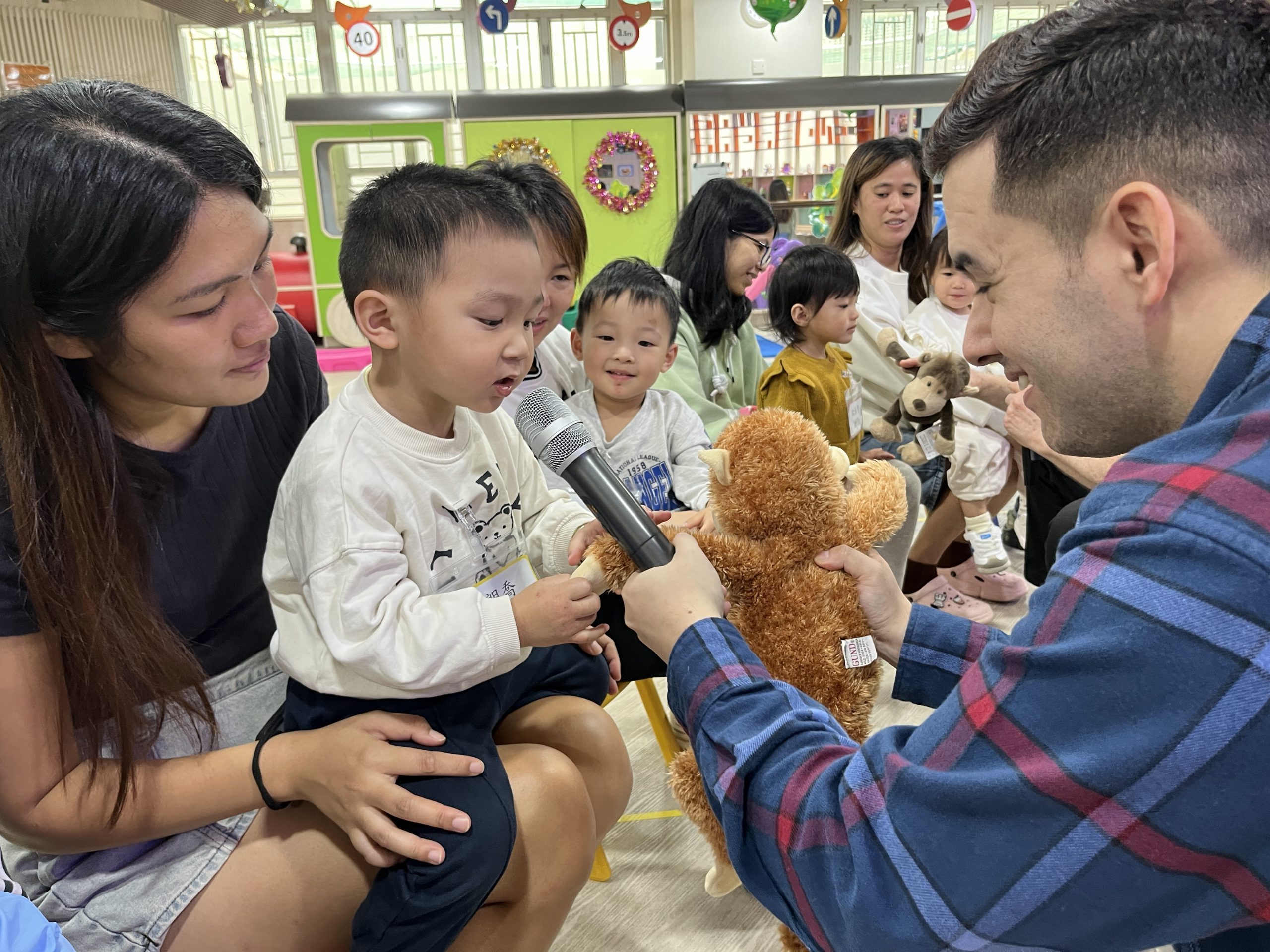 21 12 月, 2025 新生英文遊戲班(2) (new) 活動回顧﹕親子英文遊戲班(2) 「Little Monkey , Little Monkey ….」是次「新生英文遊戲班(2)」,一眾小朋友戴上猴子頭飾,變身成為可愛的小猴子,與外籍老師一同唱唱跳跳,邊玩邊學,非常開心! 樹上又大又小的香蕉,那一隻合適?聽著外藉老師的說話就成功做到了,還會說「Banana!」呢!看著小朋友們開心雀躍的樣子,可愛極了!